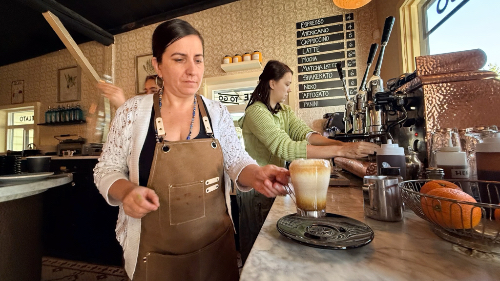 Heading toward the water? Stop into Waterfront Coffee Company, check out their eagle mural above the building, and take your coffee on a stroll.